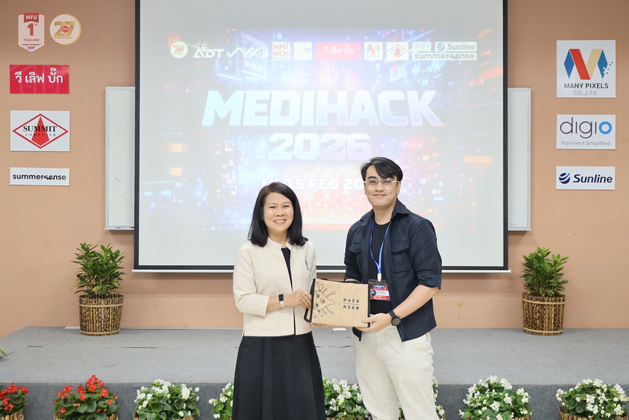 สำนักวิชาเทคโนโลยีดิจิทัลประยุกต์ มหาวิทยาลัยแม่ฟ้าหลวง (มฟล.) ร่วมกับ โรงพยาบาลศูนย์การแพทย์มหาวิทยาลัยแม่ฟ้าหลวง จัดโครงการ “ADT MediHack – Exploring AI for Healthcare Solution 2026” ระหว่างวันที่ 14–15 กุมภาพันธ์ 2569 เพื่อเปิดเวทีให้นักศึกษาจากหลากหลายสาขาวิชาร่วมกันพัฒนาทางเลือกด้านสุขภาพดิจิทัล โดยใช้ ปัญญาประดิษฐ์ (AI) เทคโนโลยีดิจิทัล และการออกแบบ UX/UI เป็นเครื่องมือหลักในการแก้ไขปัญหาเชิงระบบและสร้างต้นแบบนวัตกรรมที่สามารถต่อยอดสู่การใช้งานจริงในอนาคต