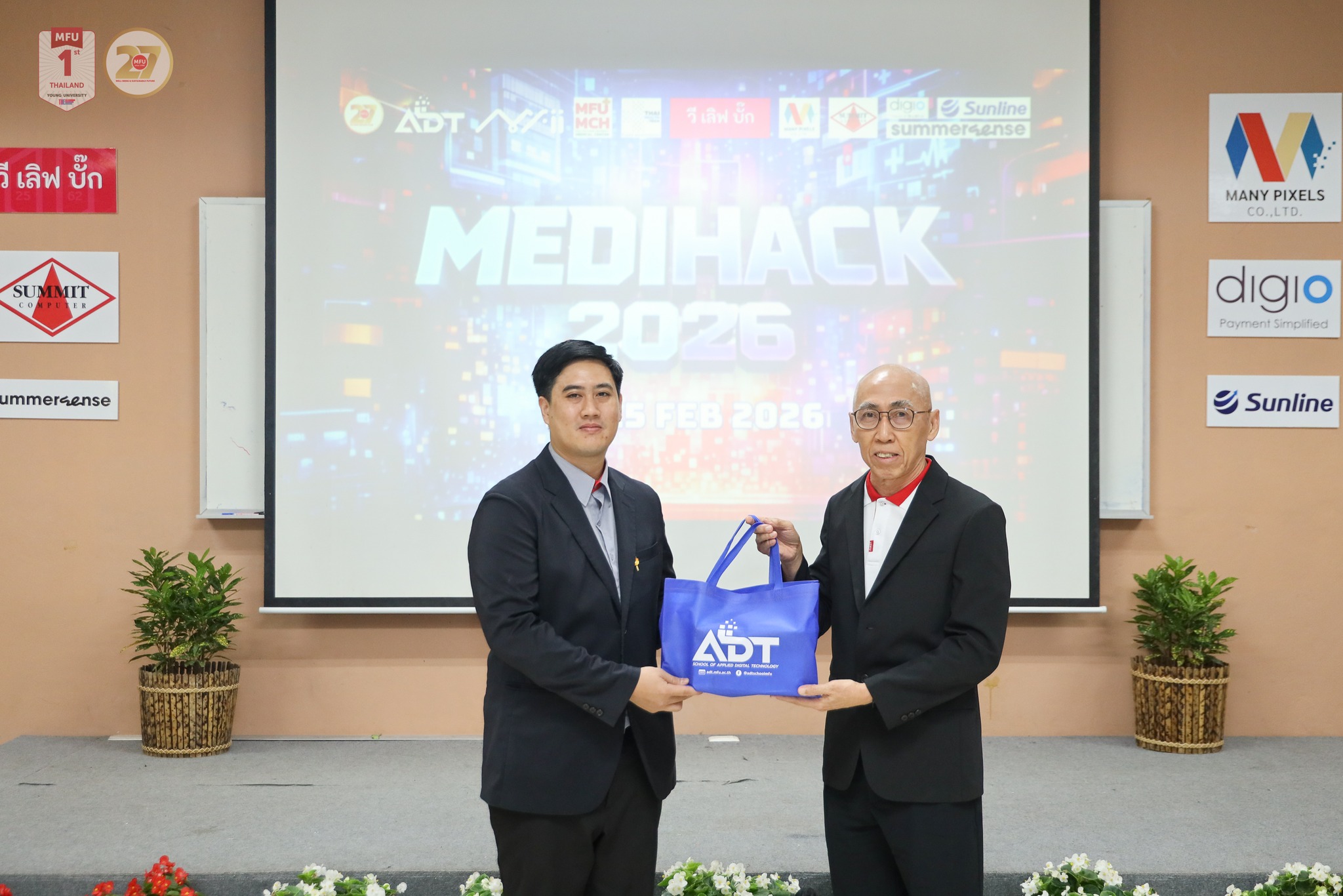 ADT MediHack 2026 เป็นหนึ่งในกิจกรรมที่สะท้อนวิสัยทัศน์ของมหาวิทยาลัยแม่ฟ้าหลวงในการส่งเสริมการเรียนรู้เชิงปฏิบัติการ โดยเชื่อมโยงโจทย์จากหน่วยงานจริง พร้อมพัฒนาศักยภาพนักศึกษาให้เป็นกำลังคนที่มีทักษะ AI + Digital + Design ตอบโจทย์ประเทศด้านสุขภาพดิจิทัลอย่างเป็นรูปธรรม